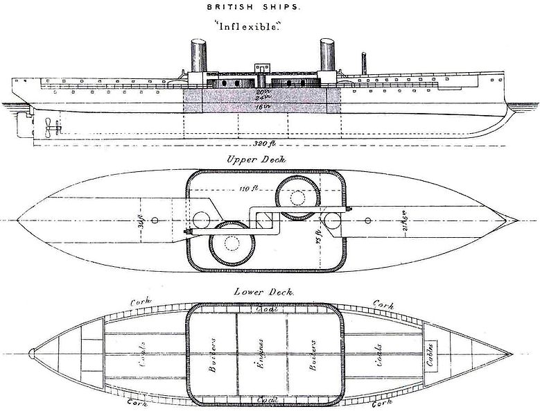 HMS Inflexible, illustrating the protective deck