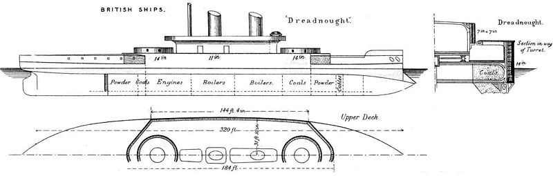 HMS Dreadnought, showing the later citadel layout.