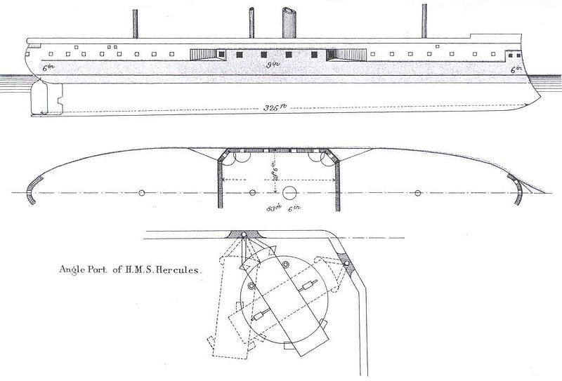 HMS Hercules, with central citadel and waterline belt