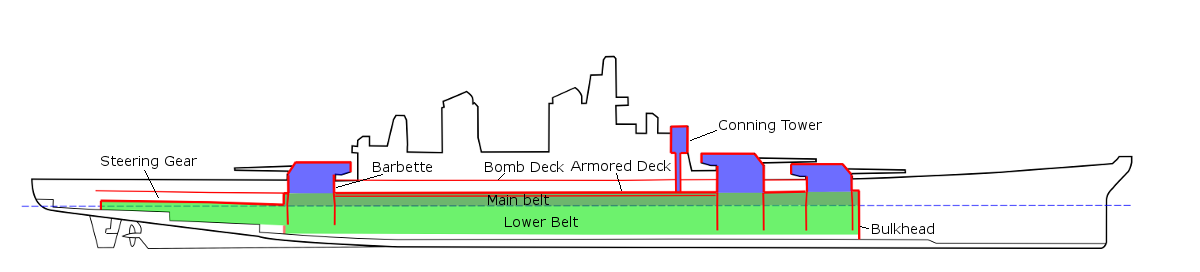 8 This provides protection to a great deal of living space and workshops on the 2nd deck. Interestingly, this can be thought of as a return to the old armor schemes where sections of the ship were armored against light weapons. ⇑