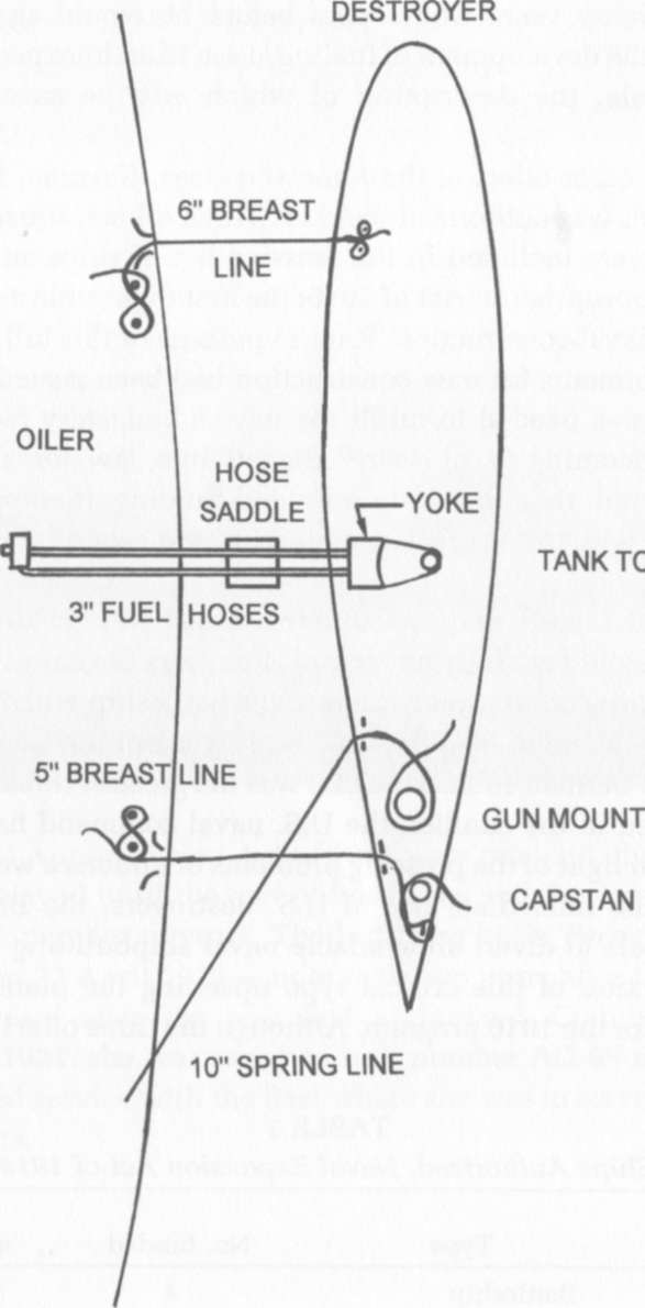 In 1917, when the US entered World War I, destroyers were urgently needed in European waters to combat the U-boat threat. Unfortunately, most US destroyers did not have the endurance to cross the Atlantic on their own. Maumee was ordered to prepare to refuel a squadron of destroyers in the open ocean 300 miles south of Greenland, and Nimitz was responsible for producing the necessary equipment. Each destroyer was towed alongside the oiler, and a pair of 3" fuel hoses were rigged into her tanks. All six destroyers were fueled successfully in 10 hours and 35 minutes, despite a heavy swell and the total inexperience of everyone involved.45