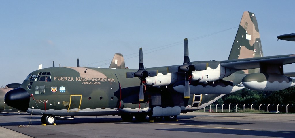 While the 29th was most notable for the capture of Goose Green, it was a busy day elsewhere. The final bomb on Sir Lancelot was disarmed, clearing the ships in San Carlos of unexploded bombs for the first time in 8 days. The Argentinians also paid their first visit to San Carlos since the 25th, when two aircraft made a recon pass, with one of them, a Dagger, falling to a missile. At almost the same time, the tanker British Wye was coming under attack 780 miles to the northeast from a rather unlikely airplane. The British had been well aware of the air threat to their long and perilous logistics chain, and had made sure to remain out of range of Argentina's Canberra bombers. The Argentinians had countered this by fitting Pucara bomb racks to some of their C-130s, one of which found the tanker and dropped eight bombs on her. Fortunately for the British, the only hit bounced off the forecastle, but the merchant ships were quickly rerouted to keep them out of C-130 range as well.