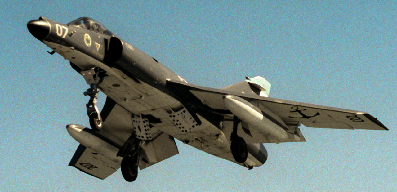 5 The Super Etendards began practicing for conventional bombing attacks, but their crews hadn't become proficient by the time the war ended, and they played no further part in the conflict. ⇑