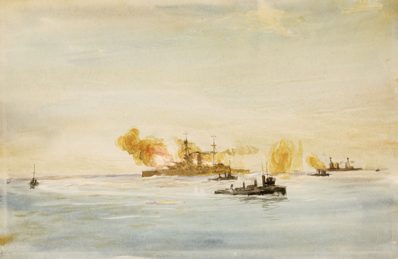 In May of 1916, the stalemate in the North Sea between the British Grand Fleet under John Jellicoe, and the German High Seas Fleet under Reinhard Scheer came to an end. The British used German signals to learn of the fleet's sailing and sent Jellicoe out to trap him. The British battlecruisers under David Beatty first met Hipper's German battlecruisers, and chased them south until they met the main body of the High Seas Fleet, losing two of their number to magazine explosions in the process.