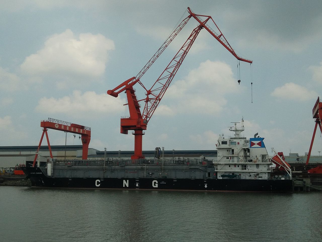 Of course, all of the equipment to liquefy and handle natural gas is expensive, often taking a decade or more to pay for itself, and in recent years, shorter, lower-volume routes have seen a shift to Compressed Natural Gas (CNG). This is stored at over 250 times atmospheric pressure, although the density of the resulting product is still only about 40% of that of LNG. All gas carriers are inherently volume-limited rather than weight-limited,1 so a CNG carrier is able to carry less cargo, a factor offset in many cases by the relatively low infrastructure costs.