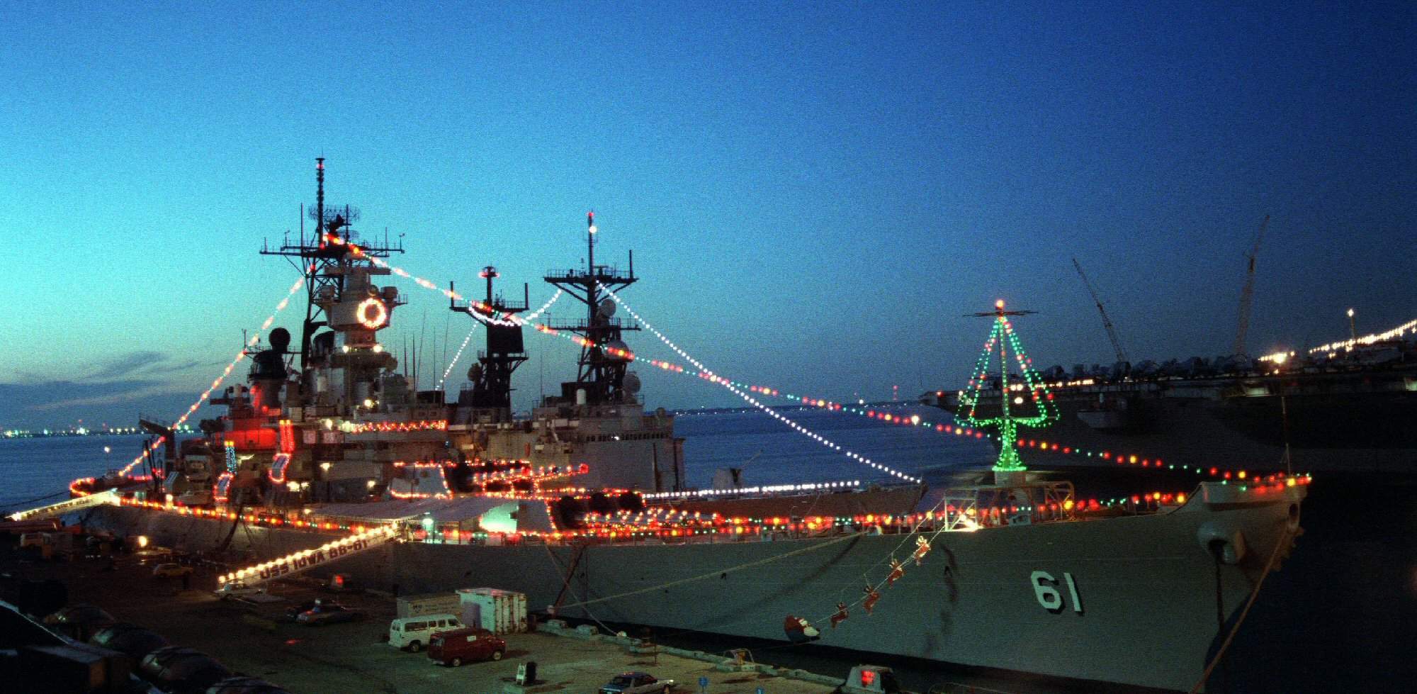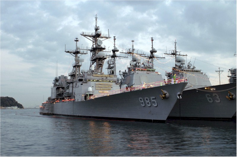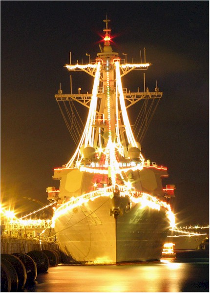 Merry Christmas, all. As I hope that you're spending time with your families, and I don't have any fun naval Christmas traditions to talk about, please accept some pictures of warships decked out in Christmas lights.