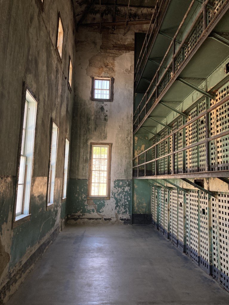 We took the guided tour and learned of prison riots and fires, hangings, escapes, captures, how the prison was built (by the inmates, who else?), the shirt factory (this only lasted a short time, this was during the depression and the commercial shirt manufacturers did not like their competitor’s use of free labor), the youngest inmate (a boy of 10, he killed his mother with a shotgun because he was tired of doing chores) and “Dennis the Cat” whose grave is on the property (more on him later).