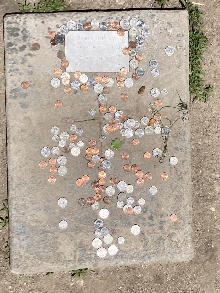 About Dennis. He was found in the prison barn by an inmate as a kitten in 1952 and lived till 1968. He is the only “inmate” with a grave on the grounds. He was everybody’s pet and was great for moral, so the warden let him stay. He was born and died on the same day: Memorial Day, so at the prison, Memorial Day is Dennis the Cat Day which is a big deal in Boise.