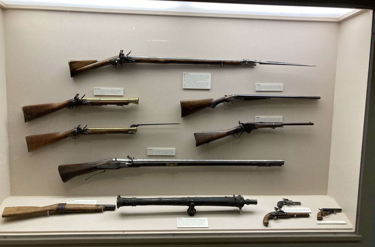 The collection is arranged in chronological order from the Bronze Age to the current day. If you follow the timeline you will learn much about weapons development through the ages.