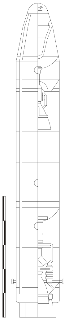 1 Some sources claim that it was fitted with a maneuvering reentry vehicle, but the most comprehensive one I've found says otherwise. Given the technology of the time, and the relatively low accuracy that can be accepted when using nuclear warheads, I believe it was a non-maneuvering RV. ⇑