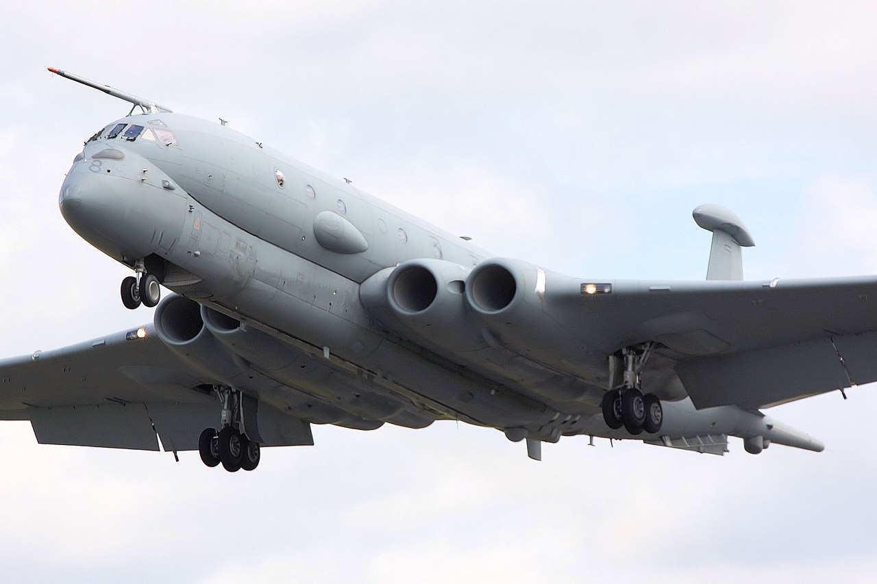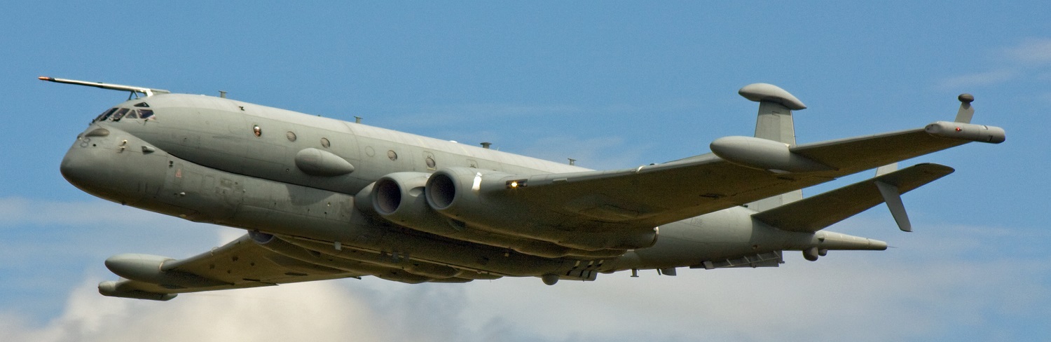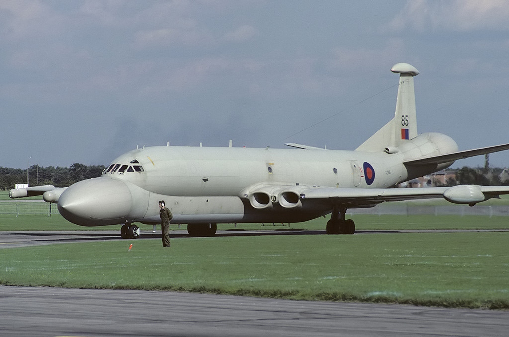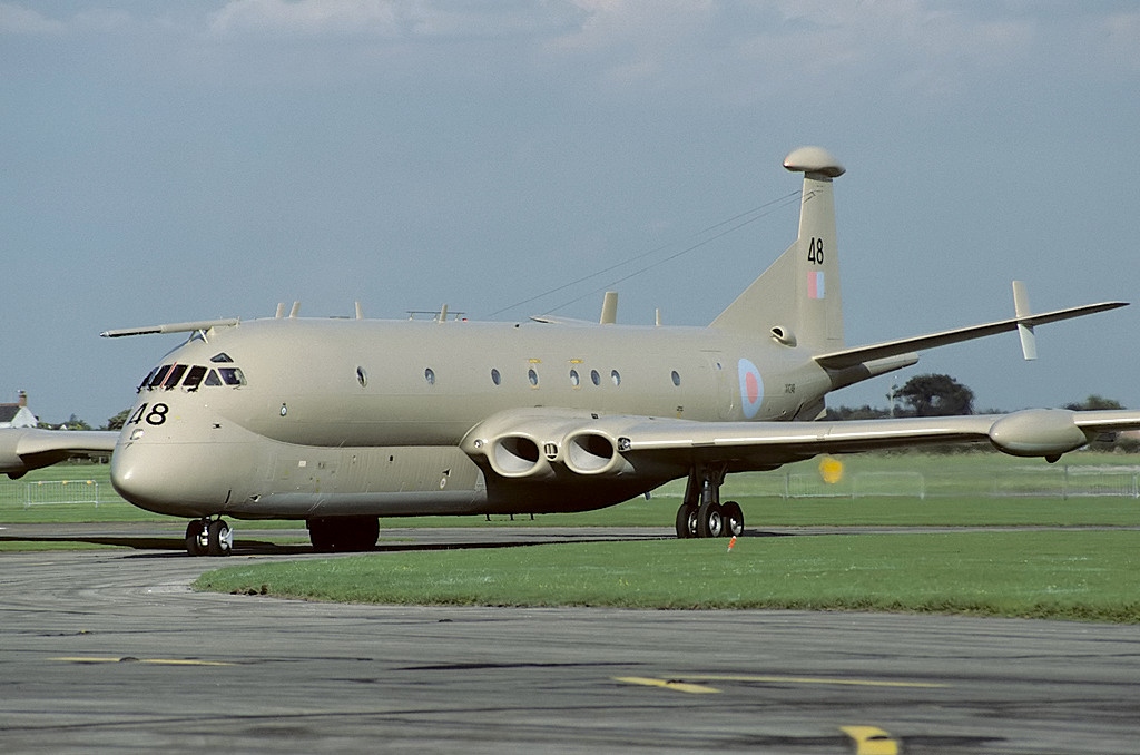 The Nimrod2 was developed in the 60s from the De Havilland Comet, the world's first jet airliner, an airplane most famous for a series of crashes caused by fatigue cracking early in its career.3 But the Nimrod was based on a later Comet where they'd fixed that problem, and initially proved to be a reasonably good aircraft, being upgraded from the initial MR1 variant to the later MR2 maritime patrol and R1 signals intelligence versions.