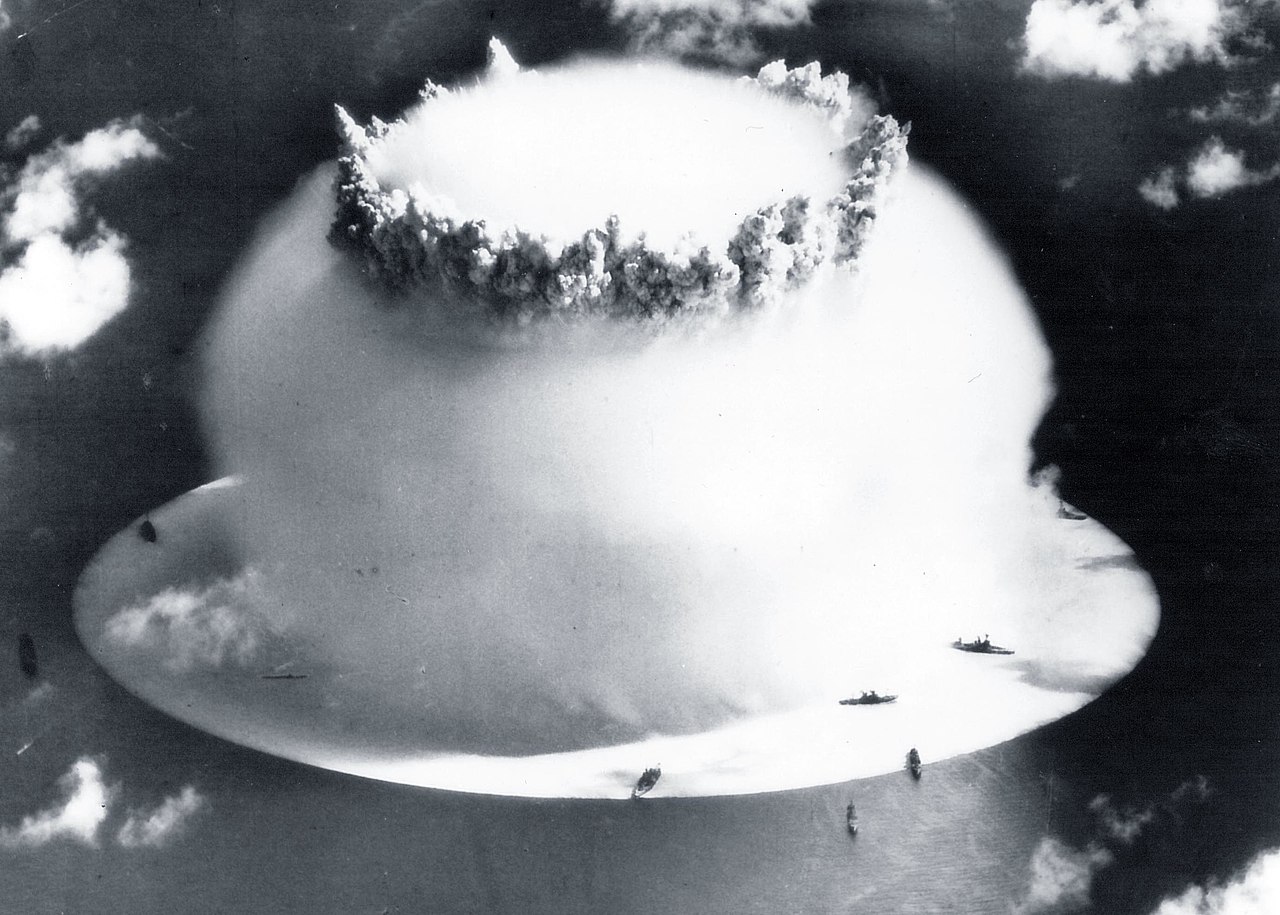 At 9:00 on July 1st, 1946, a B-29 flying over Bikini lagoon dropped a Mark III atomic bomb, a near-clone of the