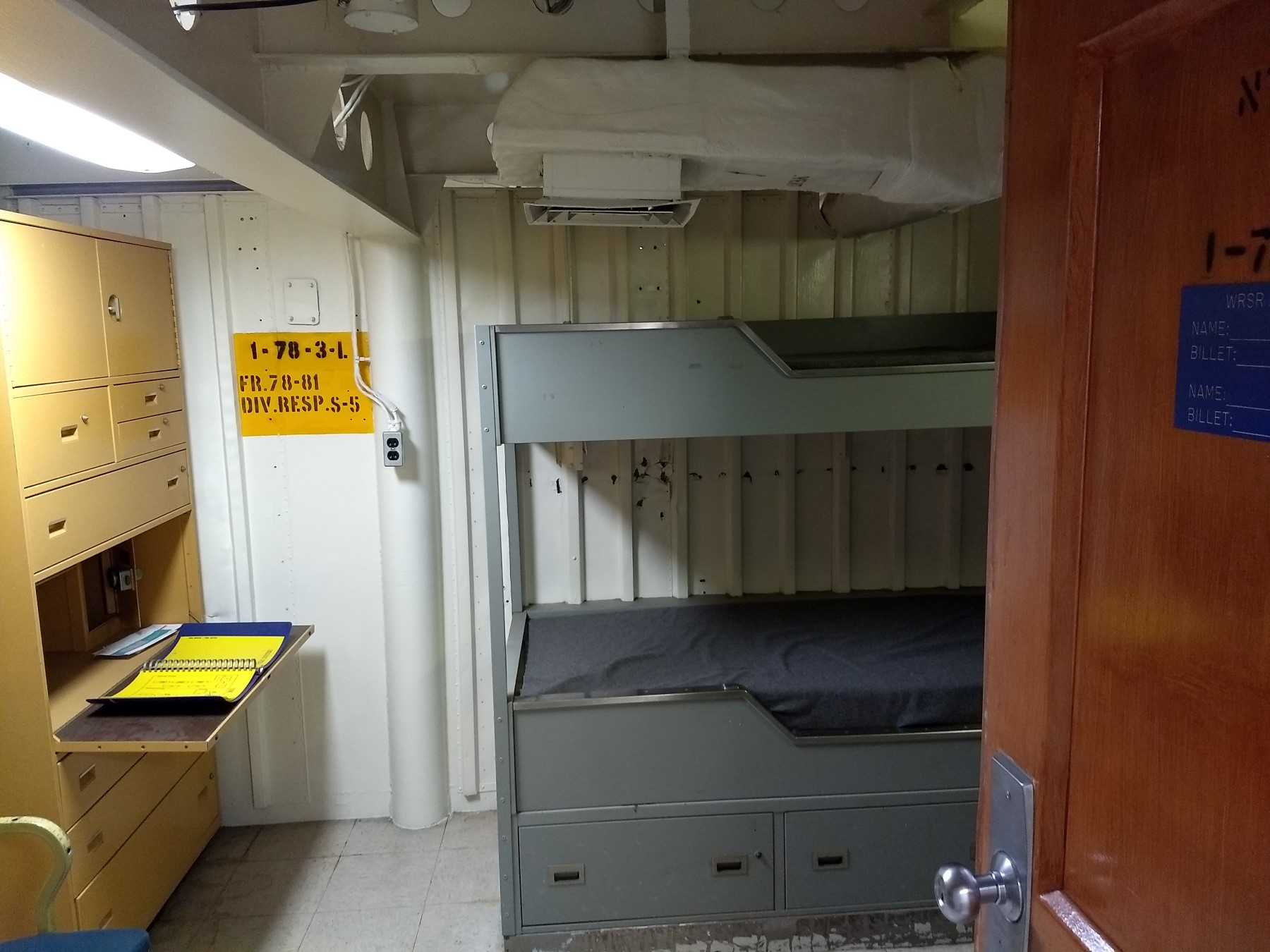 The officers have staterooms, with between one and four officers per room, as well as a desk and storage for uniforms and papers.