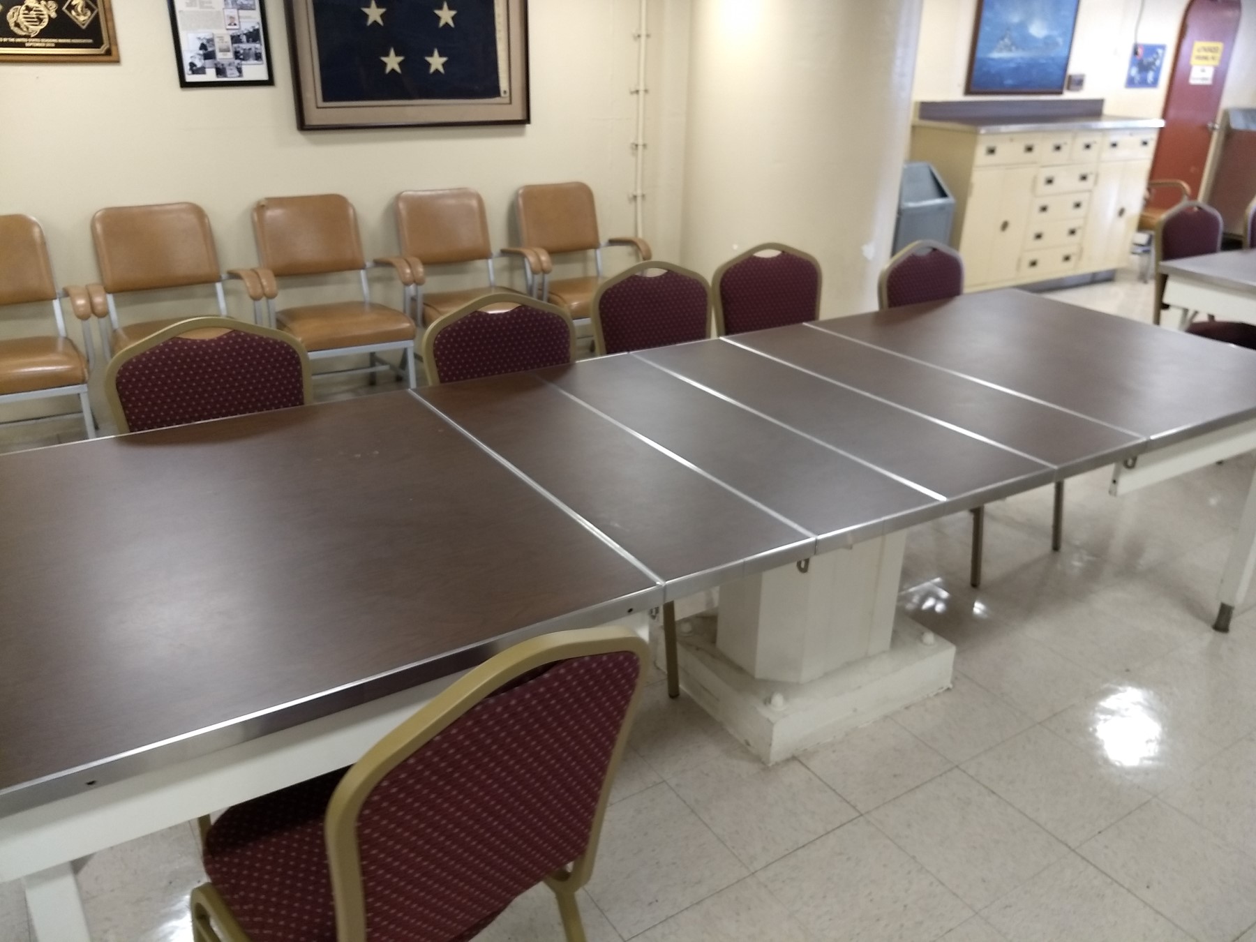 The wardroom is the center of the officer's social life. Here, they eat and talk.