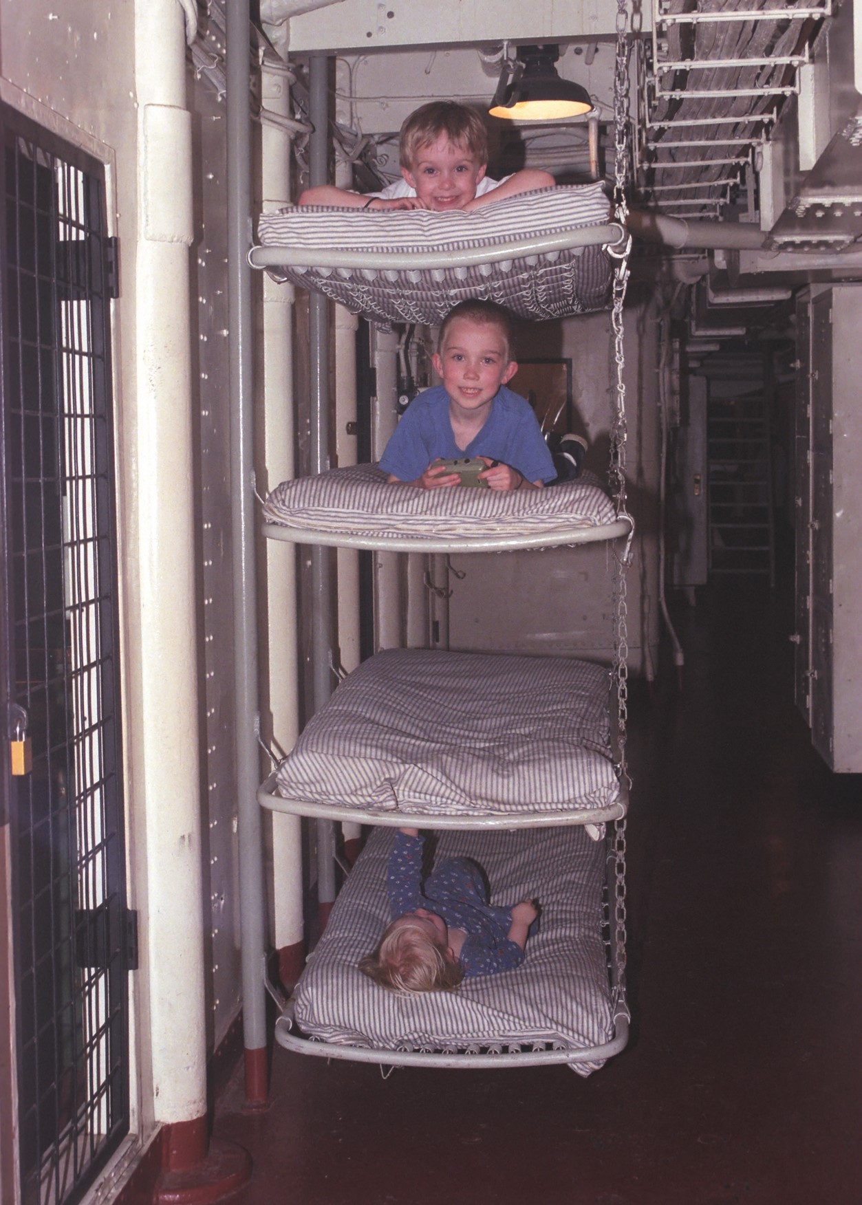 Me demonstrating the size of the bunks. It's less effective than it should be, because I was really small at the time.3