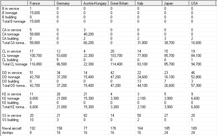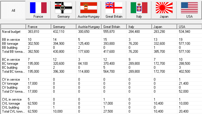 CL D'Assas finishes her reconstruction. We buy Double gun mounts on CL from the US. The Nieuport ND.70 enters service. Italy lays down a CA and 2 DD, Japan 1 CA. Germany commissions a BC, AH a BB, US commissions 2 DD.