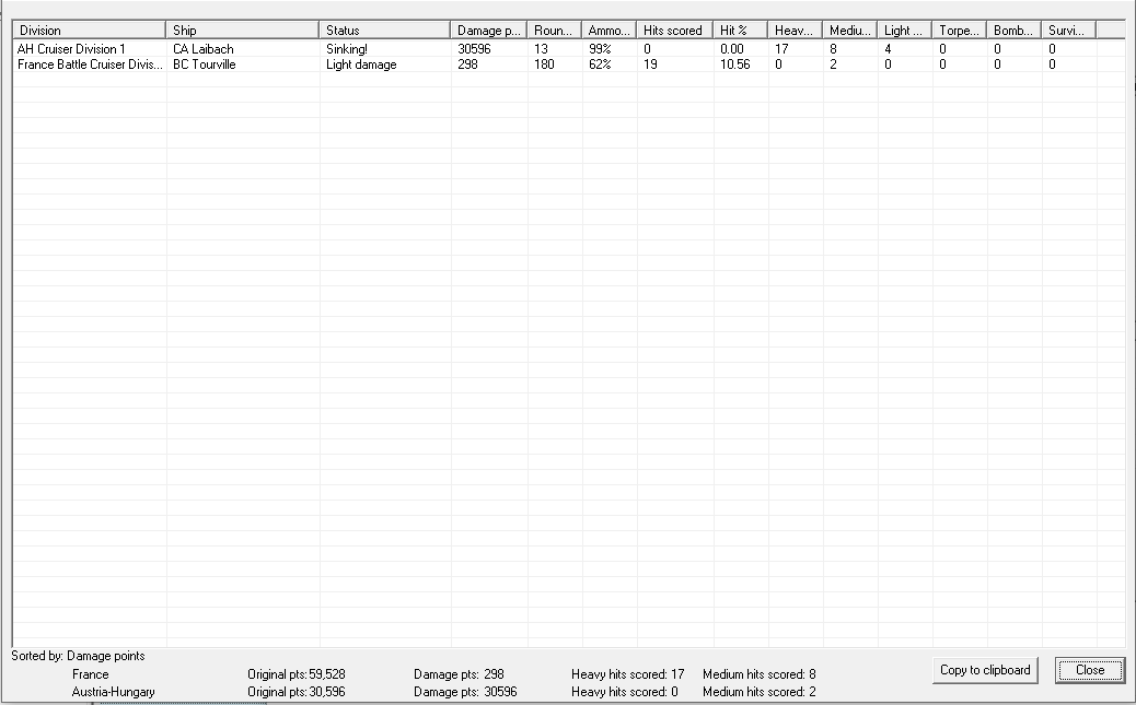 I'm glad our BCs have performed well, and looking at the San Giorgio class I expect the Italians are too. It's probably unsurprising that whoever is in charge over there now would look to emulate our designs. I'm also pleased with Tourville, though it was up against a lighter opponent.