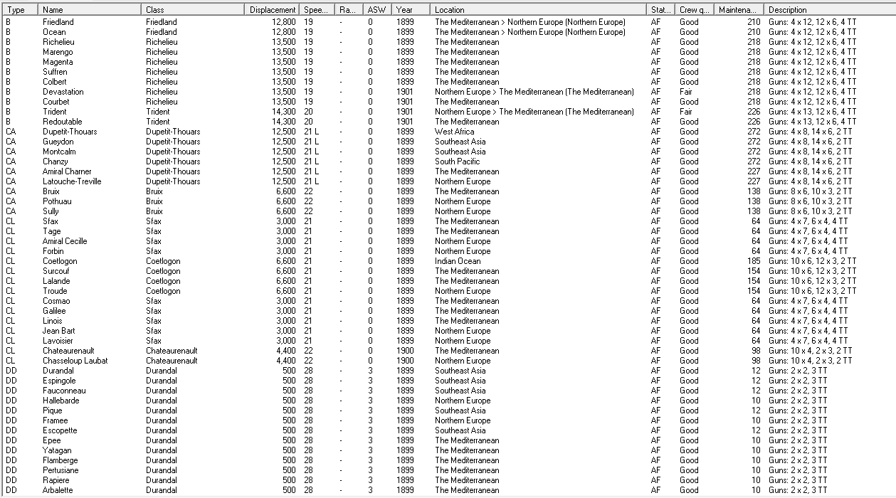 Gentlemen, our first two years at the Ministère de la Marine have gone almost exactly as we had wished. We remain on good terms with the Anglophone nations and Japan, while we stand on the brink of war with Italy. Four capital ships, two light cruisers, and a brace of destroyers all are under construction in our yards. This means that only limited funds are available for new construction right now, and we need to make good use of them to ready ourselves for war.