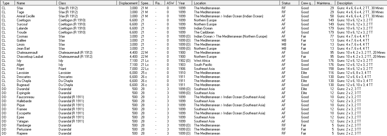 Actually, all of the CLs we've laid down except for D'Assas have colonial facilities. We can go for a couple Pascals and some destroyers, but it pushes new BB/BC construction out a very long ways. Given the German and (to a lesser extent) Italian/Austrian build programs, I'm not sure we can afford that. We have an edge now (most of the BCs in particular would be easy meat for a Lille/Rouen) but I'm not sure it will remain if we don't build aggressively.