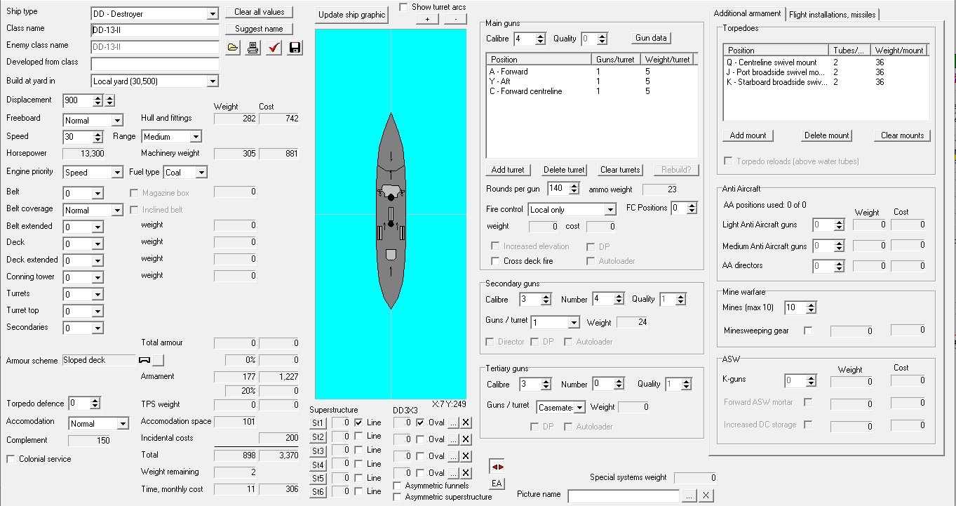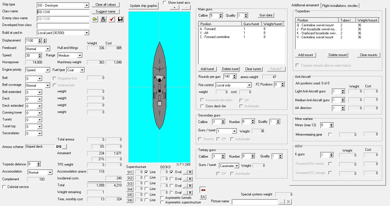 I also like the torpedo-heavy DD-13-III. Torpedo tech has come a long way since 1900.
