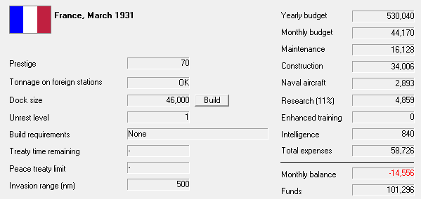 Aviation - Retire the D-Ts, send Duquesne to the Med, and build some more CVLs. We'd be cutting down from 6 (joint top with the US) to 3 (ahead of only Austria and Italy) and while ours are excellent ships, having both quality and quantity would be nice.