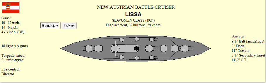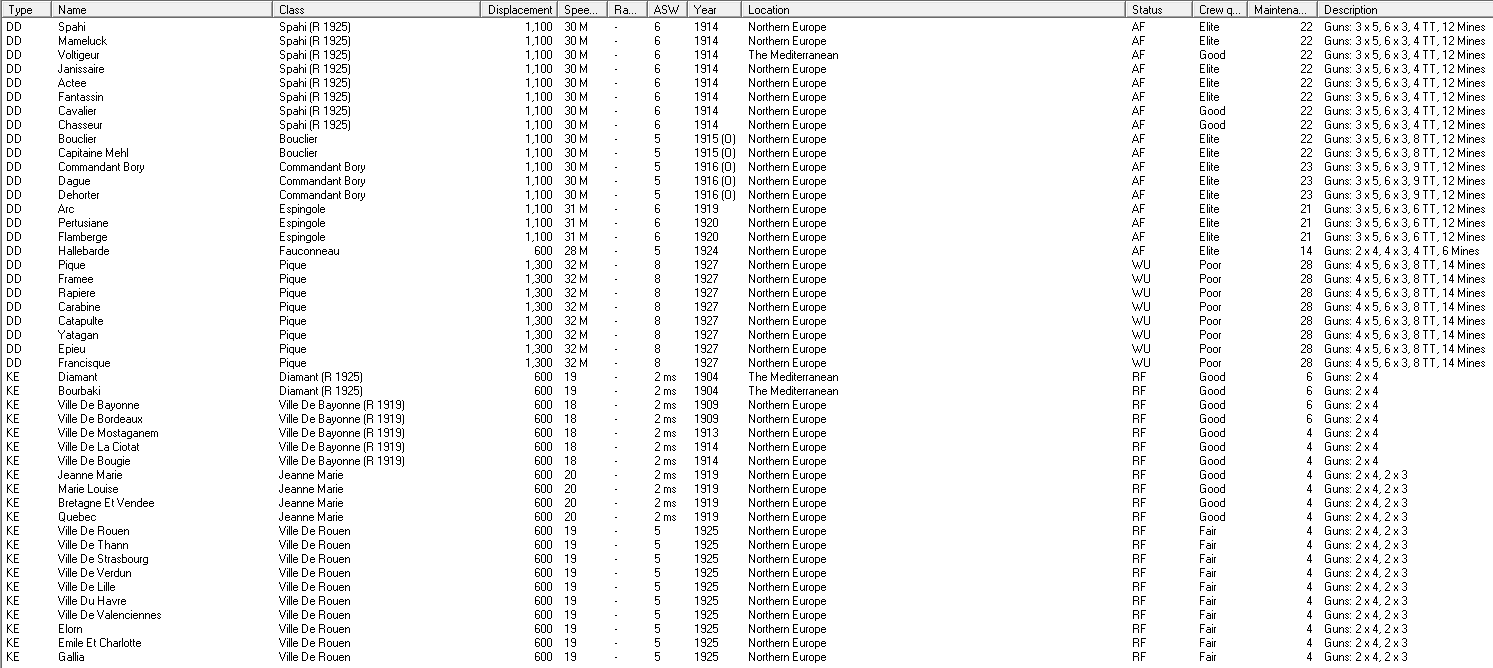 If we scrap all the mothballed ships, send the 21kn BBs to the reserve, and send Kleber to the Far East, so we can scrap Jeanne d'Arc, we still won't have quite enough to start a Bearn. What else could we do to save money? Will we have to wait until more ships are finished? I think the arguments in favour of carriers still apply, but if we have to wait for a while, I suppose we could use some 2,000 ton DDs. Could we see the design for one? The Italian BC looks very outdated. Would Kleber have any chance against one?