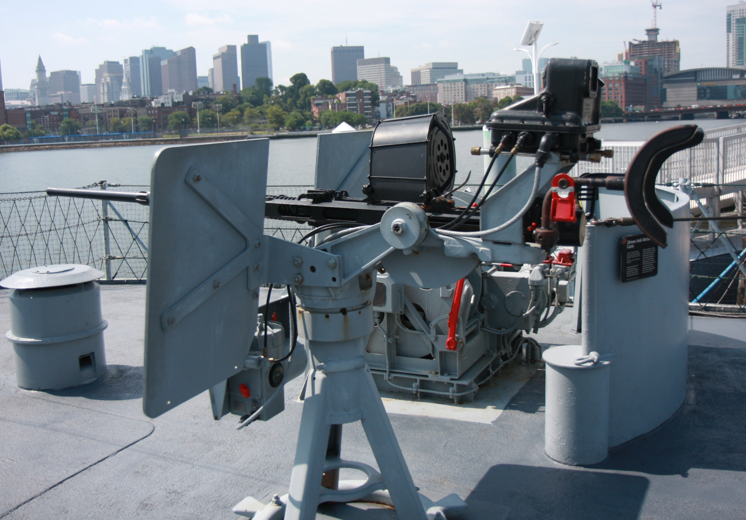 But even these weapons had their drawbacks. They were large and heavy, the quad 40 weighing as much as a single 5"/38, and were not quite adequate at very close range. A particular problem was that they, like most naval guns, had separate pointers and trainers, which reduced their ability to respond to targets close in. Initially, the Americans and British both used .50 cal machine guns, but these were seen as inadequate for the task even before war broke out. Weirdly, the solution to this problem came from another neutral country, Switzerland.6