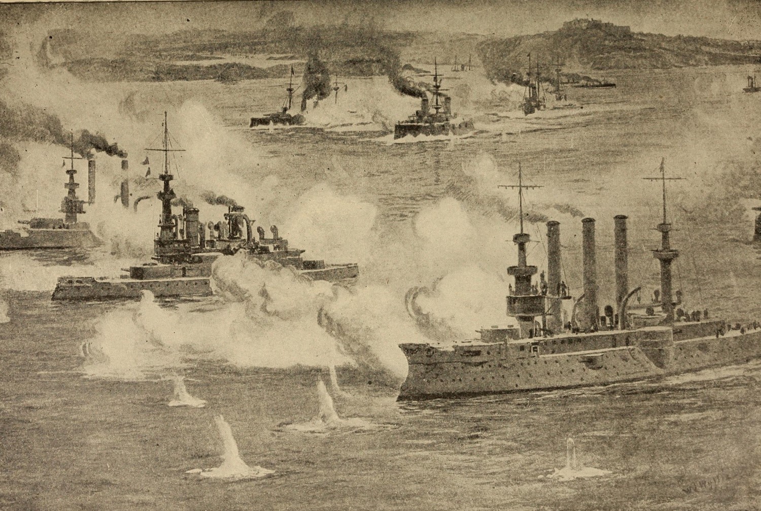 In 1898, tensions between the US and Spain over the remains of Spain's Caribbean empire boiled over after the battleship Maine blew up in Havana Harbor. The US declared war and blockaded Cuba, while the Asiatic Fleet under George Dewey destroyed the Spanish fleet in the Philippines at Manila Bay. The Spanish dispatched a fleet under Admiral Cervera to break the blockade, but it ended up trapped in Santiago on Cuba's south coast. The Americans landed troops and tightened their blockade, and on Sunday, July 3rd, Cervera finally sortied. Three of his cruisers were destroyed almost immediately, while the last one survived less than four hours. The Spanish lost almost 20% of their men, while the Americans had a single sailor killed and minor damage to their ships.