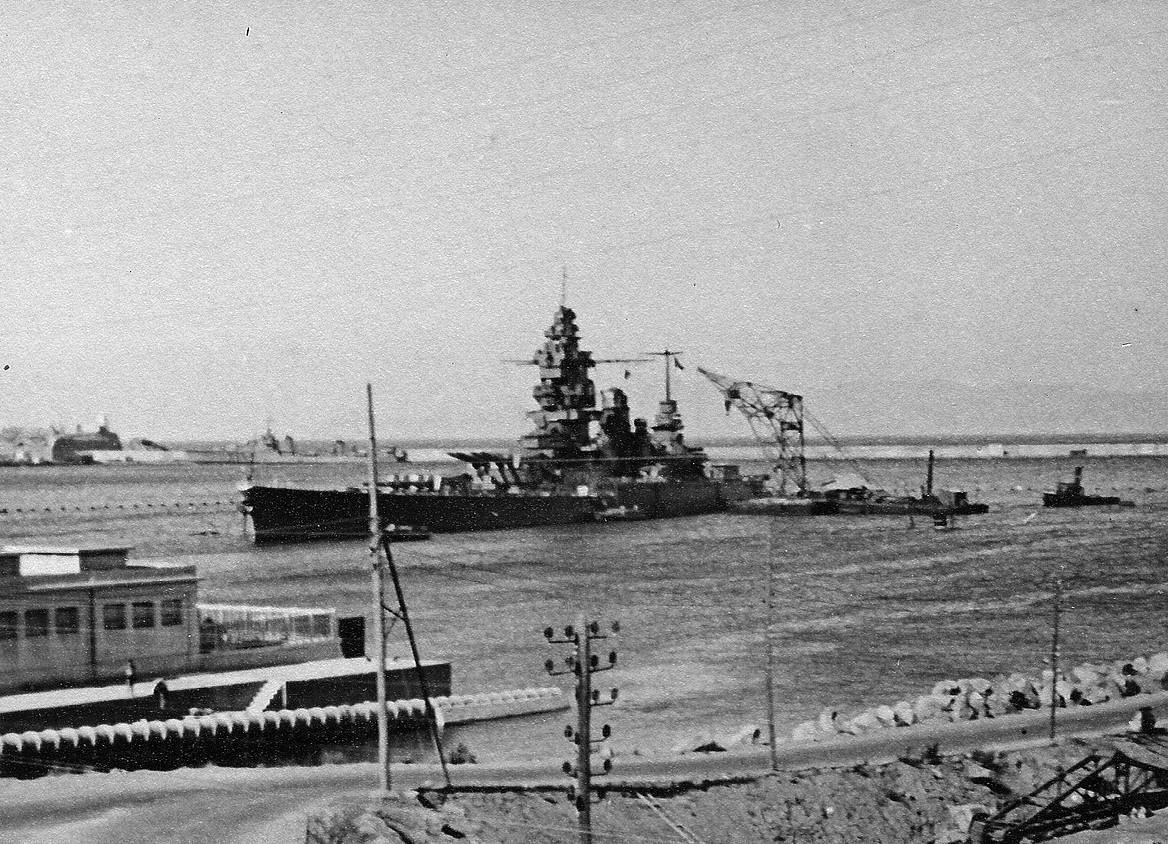 Almost as soon as the fires were out, the French began work on refloating Dunkerque. Word reached the British, who decided to deal with the problem with an air raid. A dozen Swordfish appeared over Mers-el-Kebir, to find Dunkerque defenseless before them. They hadn't been detected on the way in, and to convince the British that the ship was derelict, the light AA guns were unmanned. As it was, the shallow water frustrated the attack, and none of the torpedoes hit the battleship. One did sink a patrol boat tied up alongside, and she sank before her depth charges could be secured. A few minutes after the British departed, 14 of them detonated, almost a ton and a half of explosives only a few meters from Dunkerque's side. The damage was extensive, and if the 330mm magazines hadn't been flooded when the Swordfish approached, Dunkerque would almost certainly have been destroyed. 210 officers and men were killed aboard between the two attacks, and repairs at Mers-el-Kebir took until February of 1942, when the ship transferred back to Toulon.