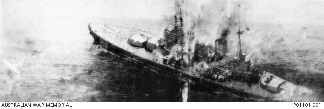 6 Some accounts say two or even three hits in this attack, but inspection of the hull in 2007 proved there was only one. ⇑