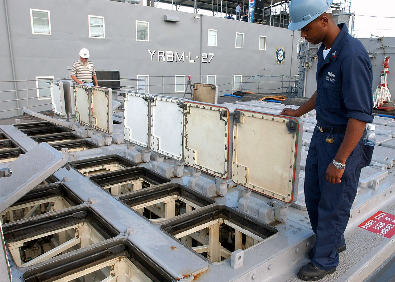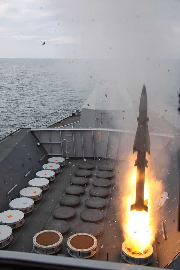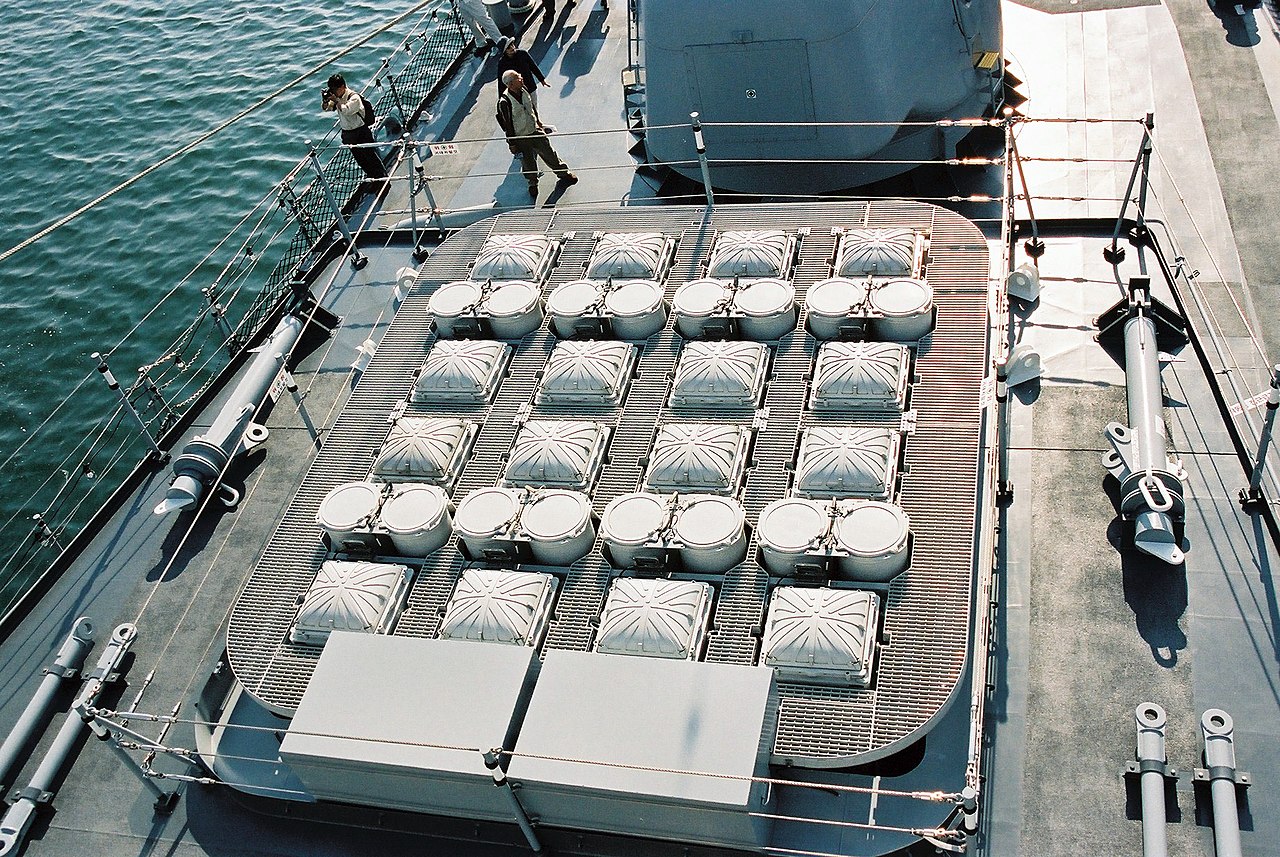 One of the biggest visual changes to warships over the last 40 years, rivaled only by the widespread use of phased arrays, is the adoption of the Vertical Launch System or VLS as the primary way of carrying and firing missiles. The basic idea is simple. Instead of storing missiles in a magazine and bringing them out to fire, store the missiles in vertical tubes, each of which is also set up as a launch cell. This brings numerous advantages. First and foremost, it is far simpler than previous missile launchers, with a dramatically reduced maintenance burden, as almost all of the important bits are kept protected from weather until the missile is fired. All missiles are kept in instant readiness to fire, allowing the ship to respond to changing threats quickly and with a significant fraction of its available weapons. Perhaps more important than all of these is the fact that a modern VLS can carry multiple types of missiles, giving a vital multi-role capability and allowing a ship to change missions with a quick port visit.