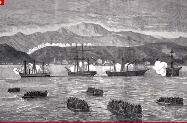 In all of these campaigns, and many more that I haven't mentioned, the primary landing craft was the standard ship's boat. This could carry infantry, and some artillery and supplies, but it was not suited to quick loading and unloading, and it was totally unable to carry horses, important to provide mobility and scouting once ashore. There were a few specialized transports built on an experimental basis, but the ancestors of the modern landing craft wasn't developed until the War of the Pacific, which saw a major amphibious operation as the Chileans moved north into Peru.