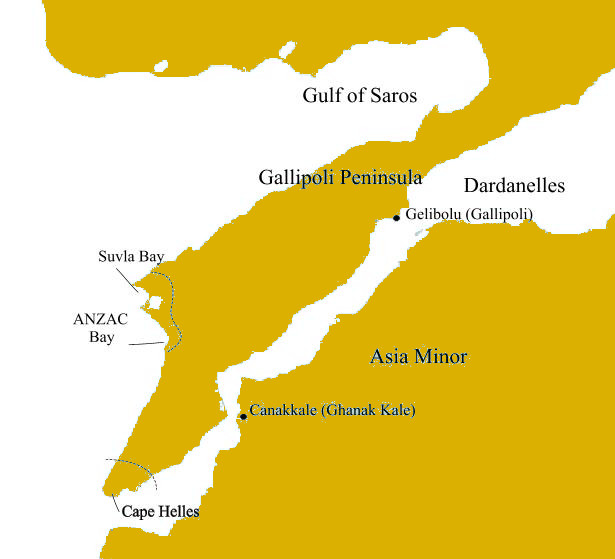 3 Some forces landed at Cape Hellas, others, mostly Australian and New Zealander, at ANZAC Cove. ⇑