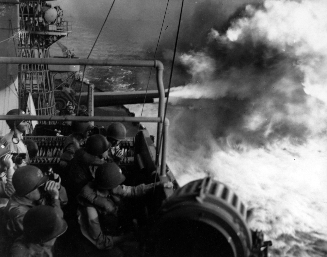 The action began at 0503, when a Japanese gun opened fire on the battleship Maryland, flagship of the task force. For the next hour the warships dueled with guns ashore, until an air strike from the fleet carriers forced them to check fire. Then the scheduled bombardment began, about 3,000 tons of naval projectiles landing on the island in the space of 70 minutes, along with more aerial munitions. The Americans expected this would be enough to daze the defenders, but they had badly underestimated the toughness of the Japanese fortifications. Their coconut log and coral dugouts withstood all but direct hits, although the bombardment did silence most of the heavier Japanese artillery and disrupt communications.