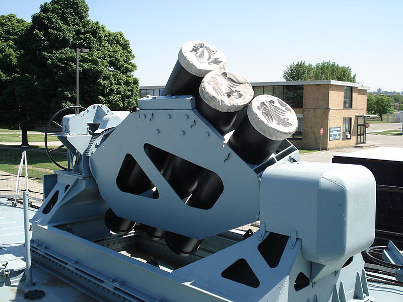 Last time, we discussed detecting submarines, but that was only the start of a process. Once a submarine had been detected, it still needed to be destroyed. At the start of the war, the only weapon was the venerable depth charge, essentially an explosive thrown over the side and fuzed to go off at a specific depth. However, as the war went on, the traditional depth charge, unchanged over the previous 20 years, became increasingly inadequate, and new and improved weapons were developed.