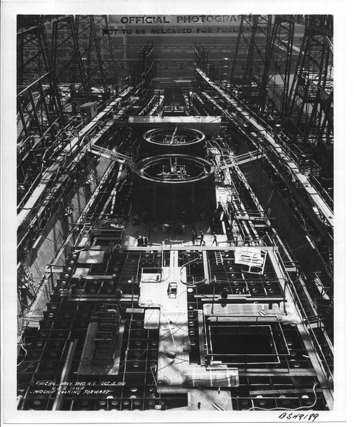 USS Kentucky under construction.6 The armor deck is being put into place around Turret II.