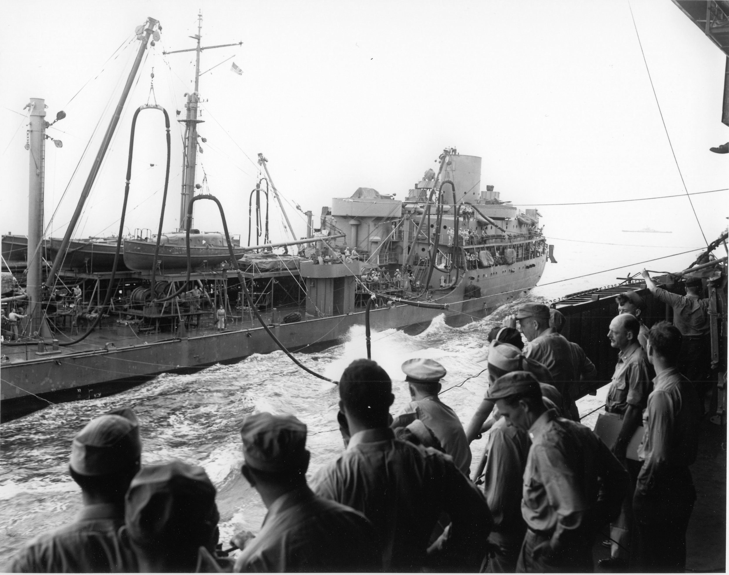 But despite all the development work, oilers alone weren't enough to support a war against Japan. Forward bases would be needed, and to make them mobile, most of the facilities had to be aboard ships. And to keep the fleet at sea even longer, the last year of the war saw the USN develop techniques to transfer ammunition and supplies at sea as well.