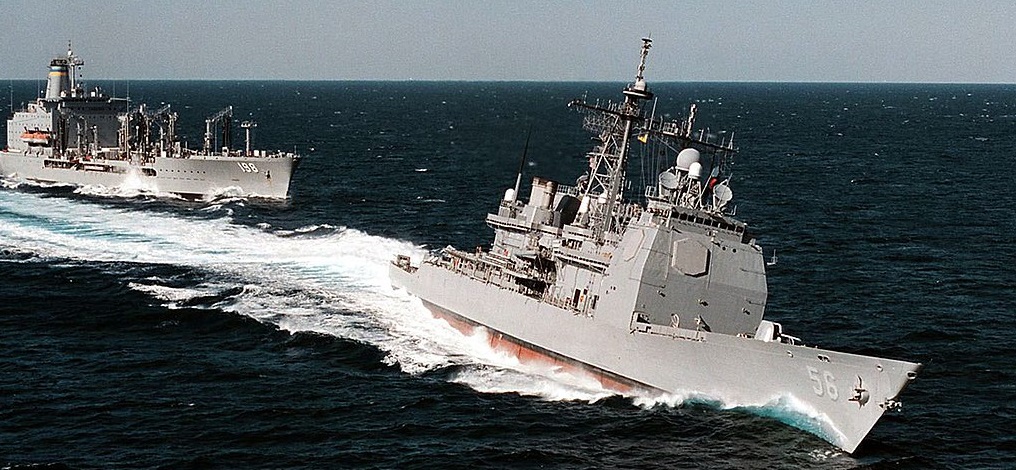 USS San Jacinto performs an emergency breakaway from oiler Big Horn