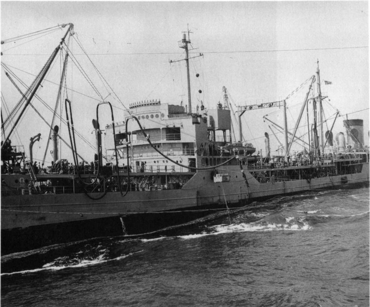 The first operational use of this technique was on February 23rd, 1945, when the ammunition ship Shasta transferred bombs to the carrier Bennington. Soon, it was incorporated into the at-sea fueling groups that had been developed in late 1943. Before the invasion of Tarawa, oilers had primarily been attached to specific task forces and used to refuel the ships en route. For Operation Galvanic, this was reversed. The oilers were grouped into their own task force, and essentially set up an oceanic gas station where other ships came to refuel. When they were empty, the oilers were sent back to Pearl or another forward base to refill their tanks. The location of the rendezvous was changed daily to protect against air and submarine attack.