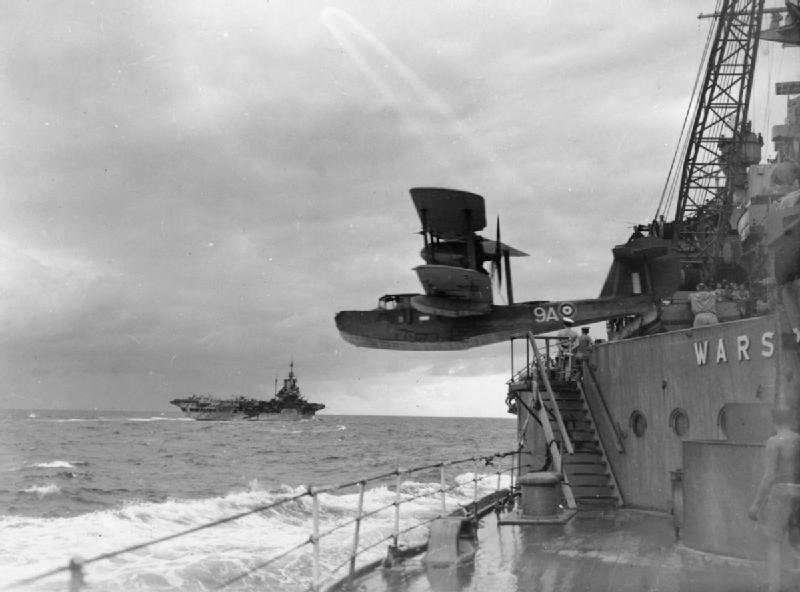 A Supermarine Walrus is catapulted from Warspite