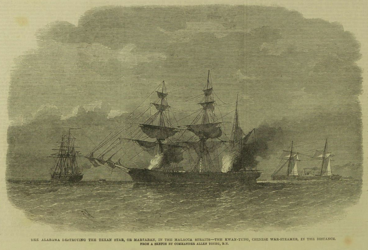 Meanwhile, the Alabama, after bagging more prizes off the coast of Brazil, sailed for the Cape of Good Hope. Disappointed with the lack of prizes there, Semmes pressed all the way to the Indian Ocean by September 1863 in search of prey, but found the pickings relatively sparse. In a way, as he was proud to note, Semmes was a victim of his own success: according to a speech at the beginning of 1864 by the English President of the Board of Trade, Northern trade with England had declined by upwards of 45 percent. While trade from American ships had declined, trade from English ships had increased, signaling a rise in vessels switching to British flags due of apprehension of Semmes and other commerce-raiders. “We did even greater damage to the enemy’s trade with other powers,” Semmes boasted, saying that the Alabama and her fellow commerce raiders had “broke up almost entirely…trade with Brazil and the other South American states, greatly crippled his Pacific trade, and as for his East India trade, it is only necessary to refer the reader to the spectacle presented at Singapore to show him what became of that.”