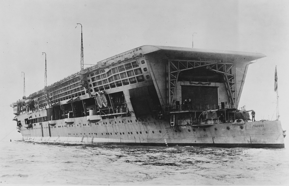 The obvious solution was to make the plane capable of landing on the water, generally by bolting some floats to it, which in turn raised that as a possibility for taking off as well. Although the drag of the floats meant that this wasn't always easy for the anemic engines of the day, it was safer than trying to take off from a deck. Equally importantly, a seaplane could continue to operate even while the carrier was anchored, which meant pilots could be trained and operations ashore supported without getting underway. This was enough of a concern that a stern deck to operate seaplanes from remained a requirement for British carriers into the 1930s. But while using the sea as a runway worked well for anchored ships, it was far less suitable for operations with the fleet, and we'll look at the solutions the British pursued next time.