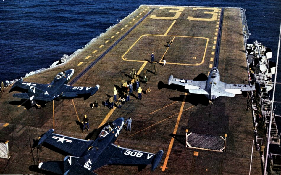 F9F-5 Panthers on the catapults of Kearsarge