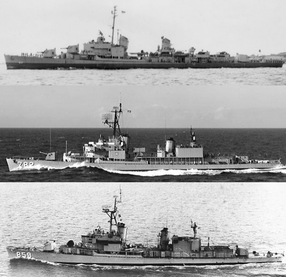 Three different versions of the Gearing class destroyer: Original, FRAM I, FRAM II6