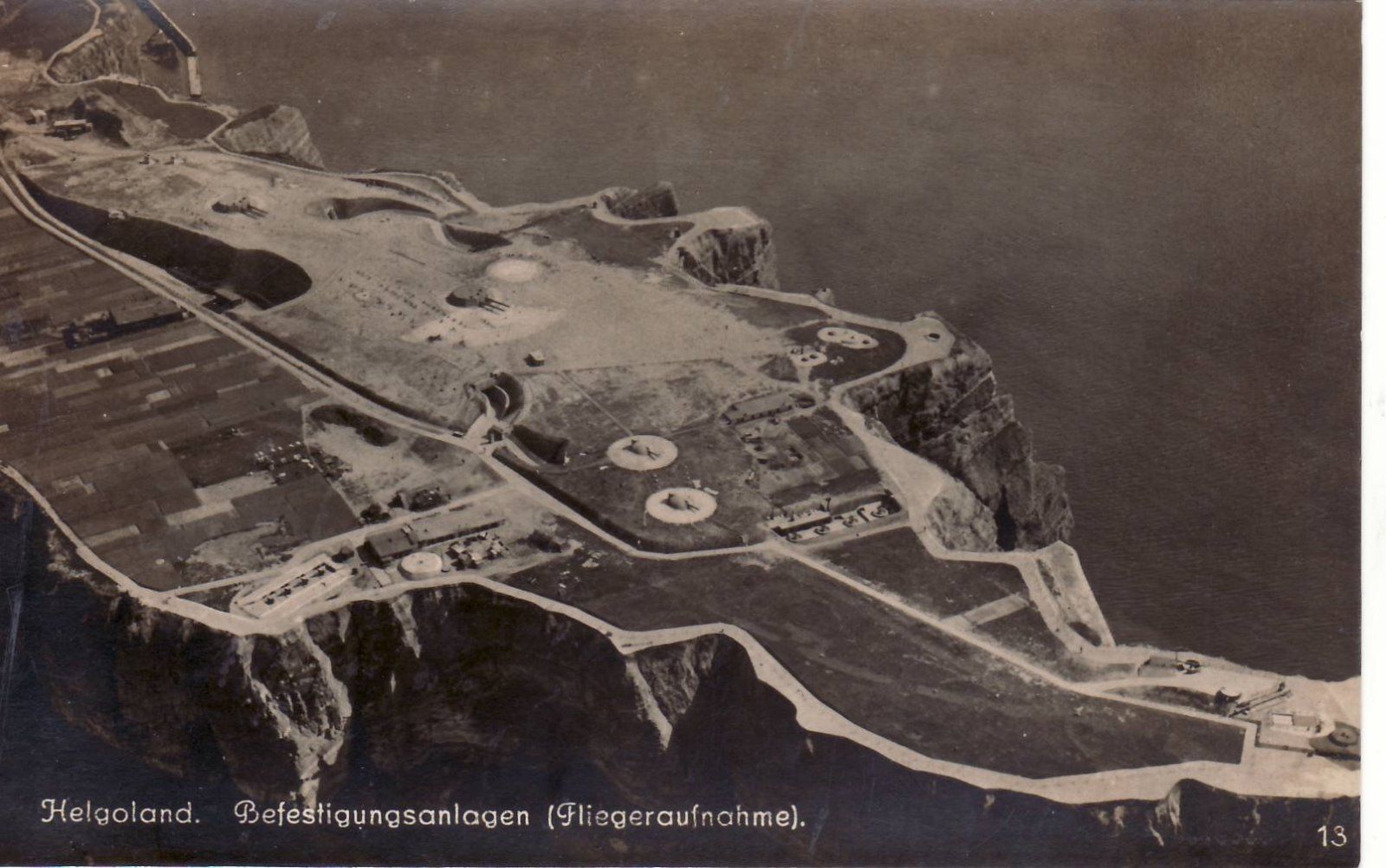 Heligoland at the end of the war, showing several of the gun turrets located on the island
