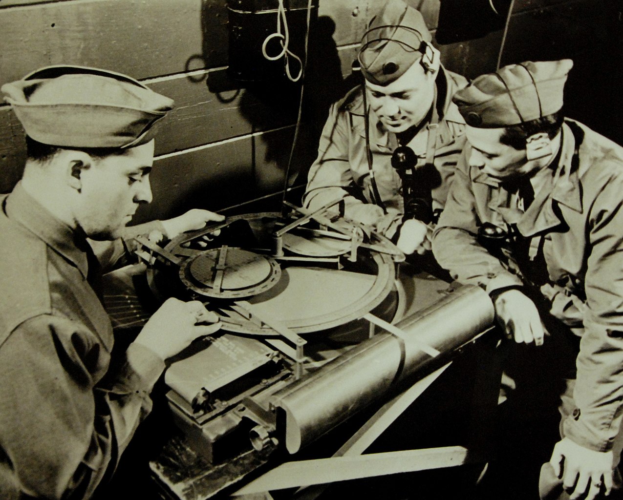 Coast Artillerymen work a Deflection Board, part of the new fire control system