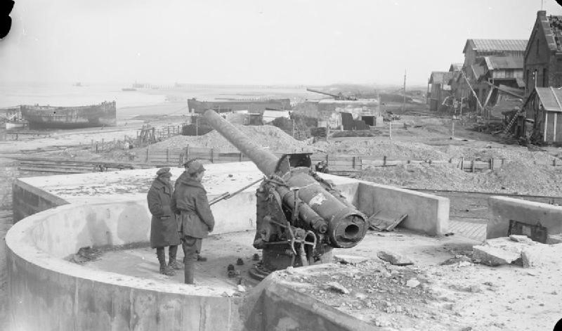 The threat of amphibious assault also led to coastal defenses being built elsewhere in Europe. The Germans were particularly sensitive to the threat of amphibious assault on the captured Belgian coast, and placed its defense in the hands of Marinekorps Flandern, which was also responsible for holding the extreme right of the German line on land. Marinekorps Flandern built a number of batteries along the coast, most using either captured Belgian or British Artillery or obsolescent guns taken from the defenses along the German coast. The largest were five 38 cm guns originally intended for the Baden class battleships. One of these guns, known as Lange Max, became famous for its service not against sea targets but in firing against the Allied positions in Dunkerque, 45 km away. Its position is preserved today, although the gun itself was destroyed postwar. It was far from unique in firing against land targets, and as a result of Allied counterfire from both land-based artillery and monitors offshore, the positions were heavily reinforced with bombproof bunkers. In total, the Germans seem to have deployed 28 5.9", 8 6.7", 8 8.2", 21 11", 4 12" and 5 15" guns along the Belgian coast. They gave valuable service, with the heavy guns outranging the monitors of the Lord Clive class so effectively that these ships were considered mostly useless by 1916. One 5.9" battery still survives today, although it was incorporated into the Atlantic Wall during WWII.