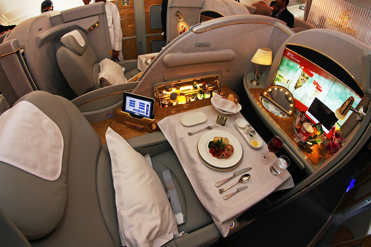 International First: On any airline with a relatively modern product (some airlines have rather outdated first-class cabins that are below modern business standards), you’re looking at a suite with a door, aisle access from every seat, and probably lots of food and alcohol. Sometimes, more than that. The current apex of this is Etihad, who has the First Apartments on their A380, in a 1-1 configuration, and the 3-room Residence. Both Etihad and Emirates have showers on their A380s as well.
