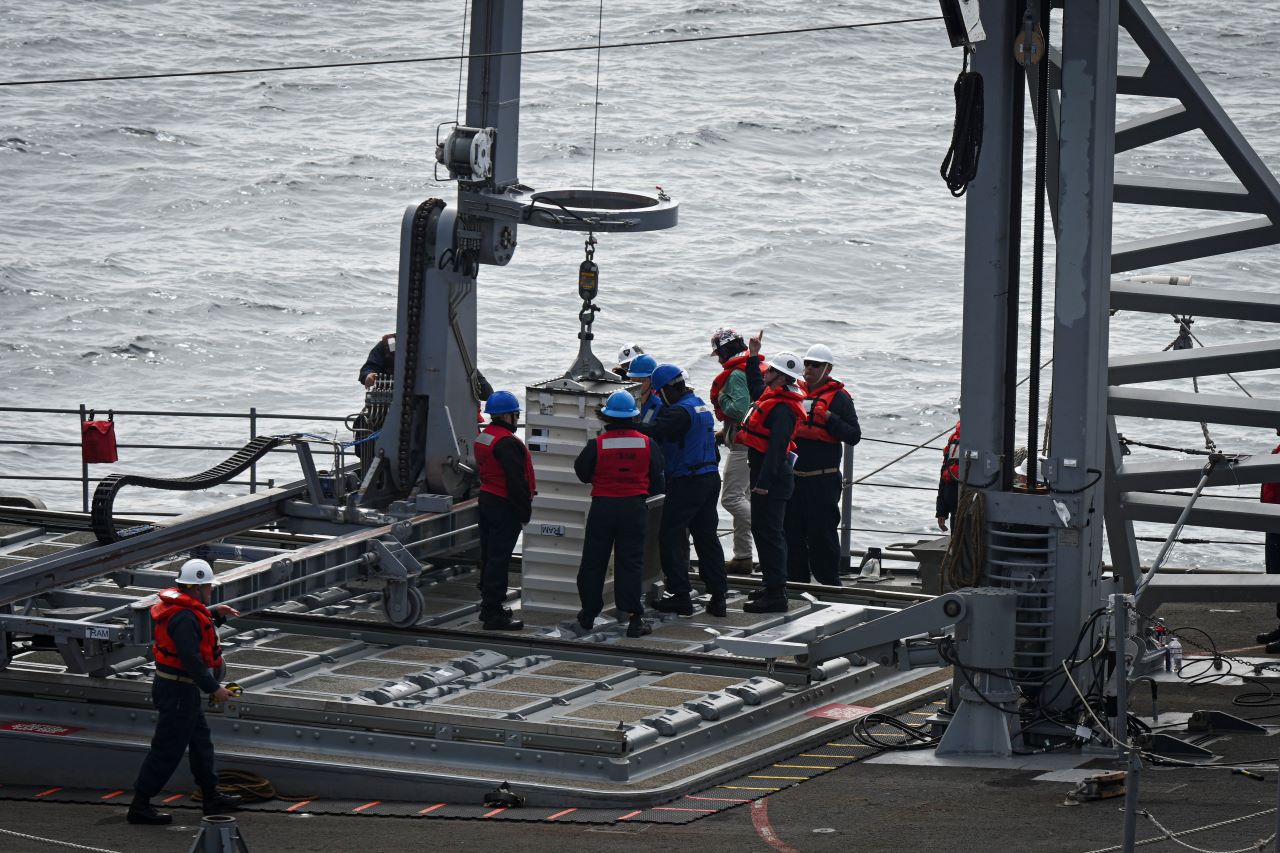 The transportable crane system is tested aboard Chosin