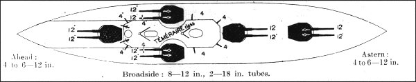 4 It appears that the British went for periscopic sights on this design, greatly reducing the blast problems that had plagued Invincible and Dreadnought with their simple sight hoods, although it wasn't until Hood that the British adopted fully closed sights and could fire superfiring turrets directly fore or aft. ⇑